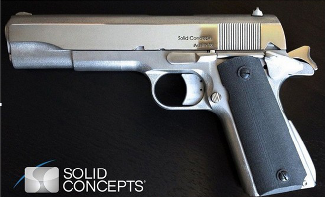 (圖為美國一公司于2013年推出的全球首款3D打印金屬手槍,該槍可連發50多發子彈)