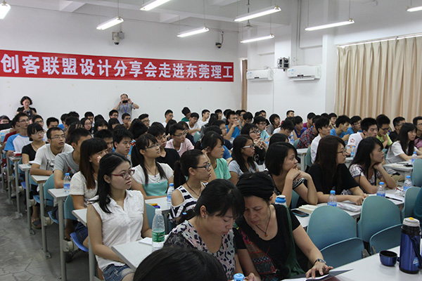 創(chuàng)客聯(lián)盟訊(記者 王柱輝)學(xué)生如何培養(yǎng)自身的設(shè)計(jì)能力?企業(yè)如何培養(yǎng)年輕設(shè)計(jì)師群體?被譽(yù)為“第三次微型工業(yè)革命”的3D打印技術(shù)前景如何?9月17日上午,由東莞市創(chuàng)客聯(lián)盟網(wǎng)絡(luò)科技有限公司主辦的“創(chuàng)客聯(lián)盟·設(shè)計(jì)分享會(huì)”在東莞理工學(xué)院松山湖校區(qū)舉行。會(huì)議邀請(qǐng)了深圳市生活匯貿(mào)易發(fā)展有限公司(簡稱“HG”)執(zhí)行董事楊朝順、設(shè)計(jì)總監(jiān)謝先生、Delonghi集團(tuán)的彭工等嘉賓到場,和近百名機(jī)械工程學(xué)院的學(xué)生分享自己設(shè)計(jì)生涯中的心路歷程。